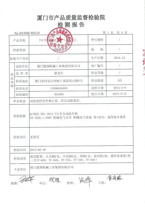 質量監督檢測報告-洗車機電機
