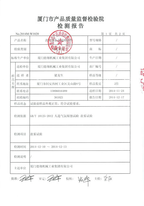 質量監督檢測報告